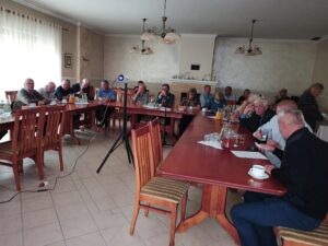 Po zwiedzeniu skansenu odbyło się posiedzenie plenarne Klubu pod przewodnictwem Prezesa Klubu Mariusza Szałkowskiego, podczas którego omówiono sprawy bieżące oraz zostały wygłoszone dwie prelekcje: „Magistrala węglowa – Śląsk-Porty”, którą wygłosił kol. Mariusz Szałkowski oraz „Furgajoncy Pieron” autorstwa Jerzego Hydzika.