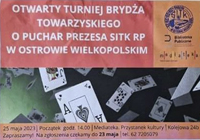 Miłośnicy brydża skorzystali z gościnności kierownictwa MEDIATEKI w Ostrowie Wielkopolskim przy ul. Kolejowej 24b i zebrali się w dniu 25 maja br. na „Turnieju Brydżowym o Puchar Prezesa Oddziału SITK RP w Ostrowie Wielkopolskim”. Głównym pomysłodawcą i organizatorem turnieju była kol. Barbara Wieczorek.